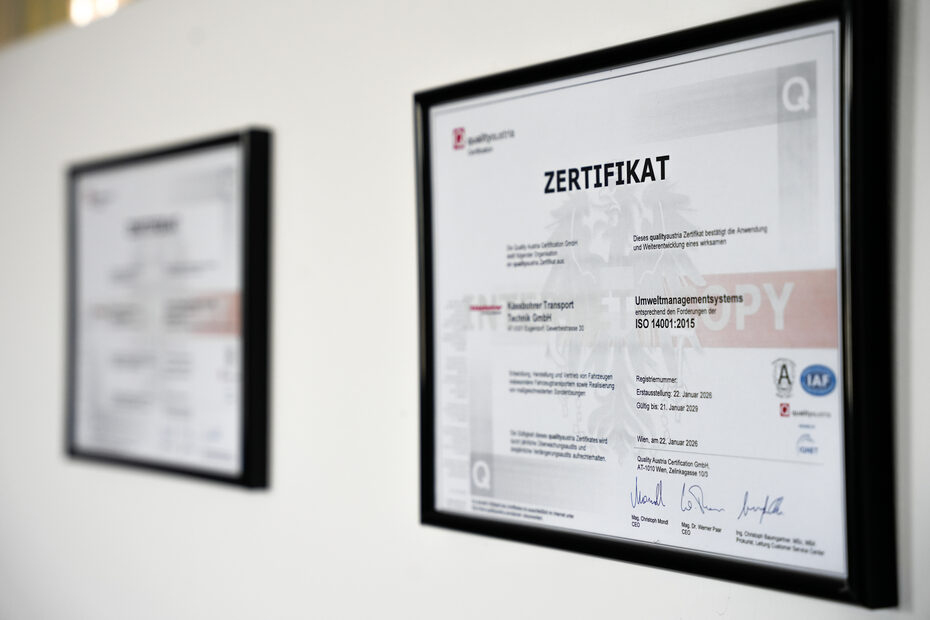 Wir haben im Jänner 2026 das Verlängerungsaudit nach ISO 9001:2015/KBA sowie das Zertifizierungsaudit nach ISO 14001:2015 erfolgreich abgeschlossen.