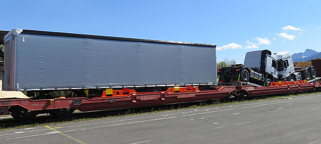 A total of 64 r2L load carriers are currently in use, for example on the route between Karlsruhe and Fernetti near Trieste.